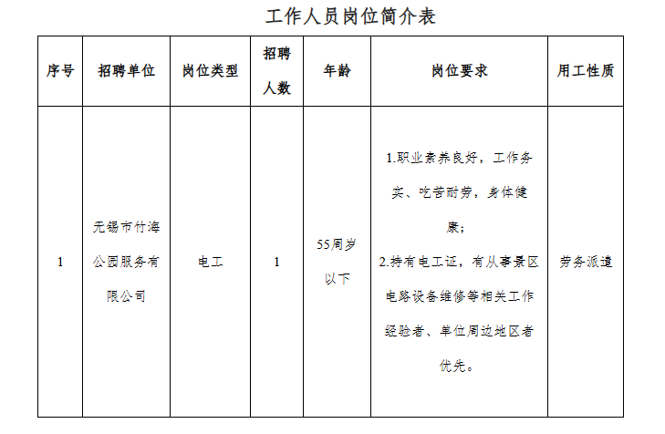 4. 具有崗位要求的其他條件(詳見下方《無錫市竹海公園服務有限公司崗位簡介表》)