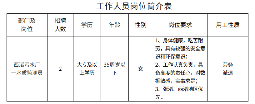 4. 具有崗位要求的其他條件(詳見下方工作人員崗位簡介表》)。
